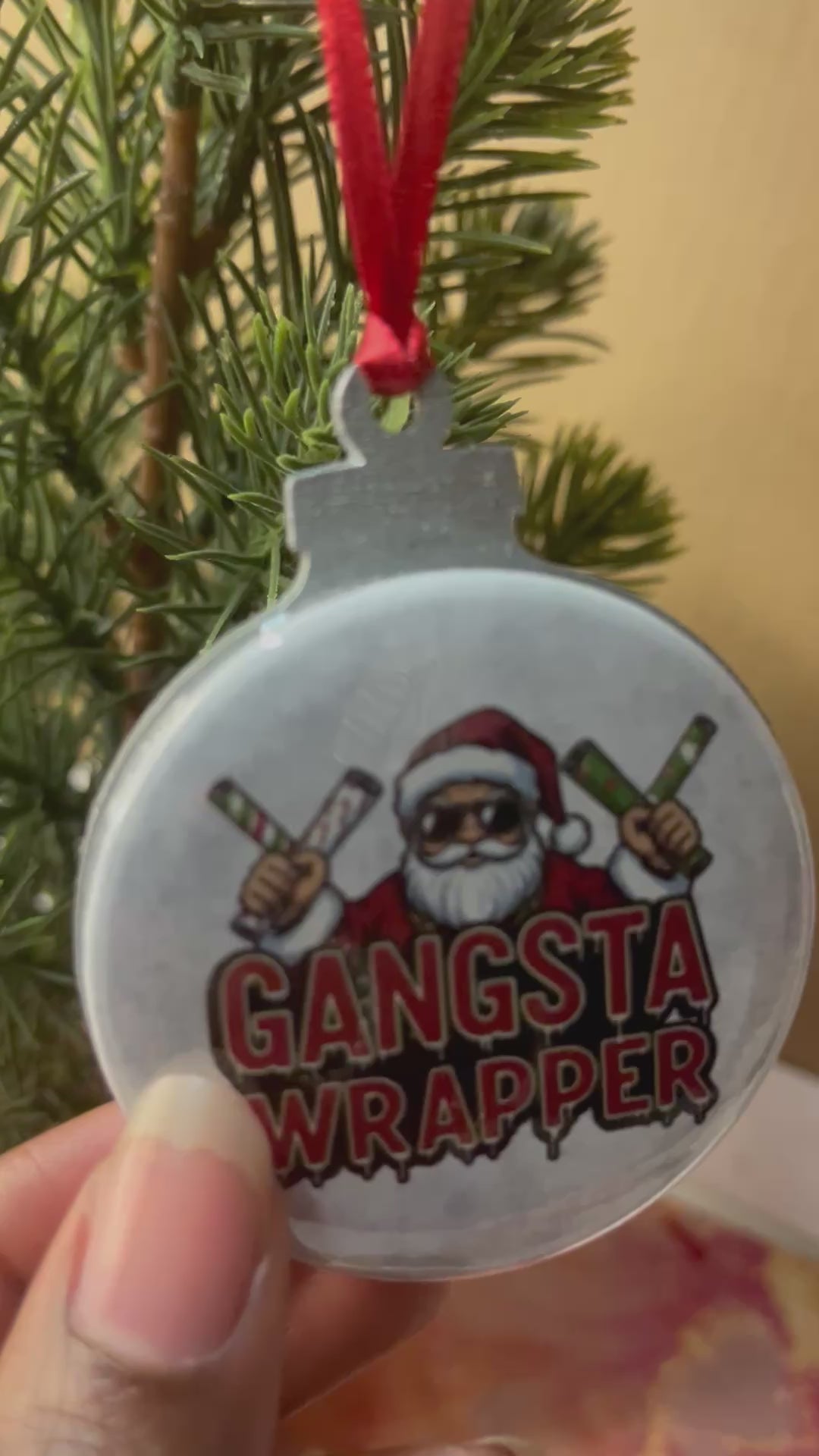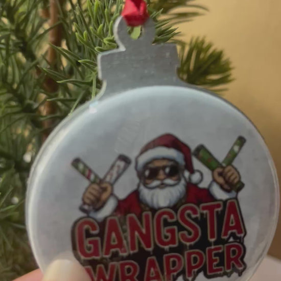 Gangsta wrapper funny Christmas ornament. light weight and compact. Can also come in gold or neutral wood color so just shoot me a message before or after purchase. 72 hour processing time as ornament needs to sit for 24 hours before shipping!